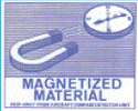 Flux measurements of packages determines whether the shipment must be classified as a Dangerous Good. Packages containing magnetic materials must be clearly identified. The label bears the picture of a magnet and a compass and, rather than a number at the bottom, contains the words "Magnetized Material".
